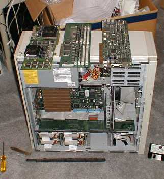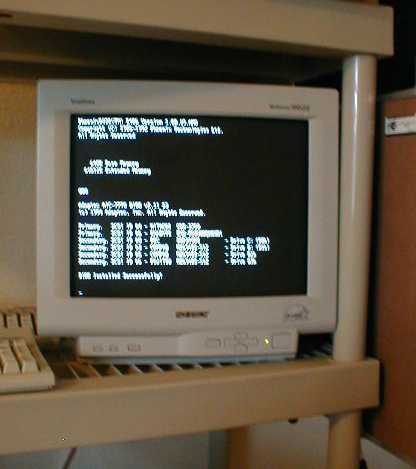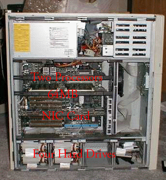 This is my Sequent WinServer. I am sure this thing had to cost a ton at one time. It has two Pentium Processors and 64MB of Memory (four 16MB SIMMs) and four SCSI Hard drives (with room for four more), SCSI CD-ROM and a SCSI Tape Drive of some kind (may be a DAT Drive). The mother-board has a built in Adaptec SCSI Controller. The BUS on the motherboard is EISA. This machine boots and sees all SCSI devices but it does not have an OS on it. I just can't figure out how to load it.